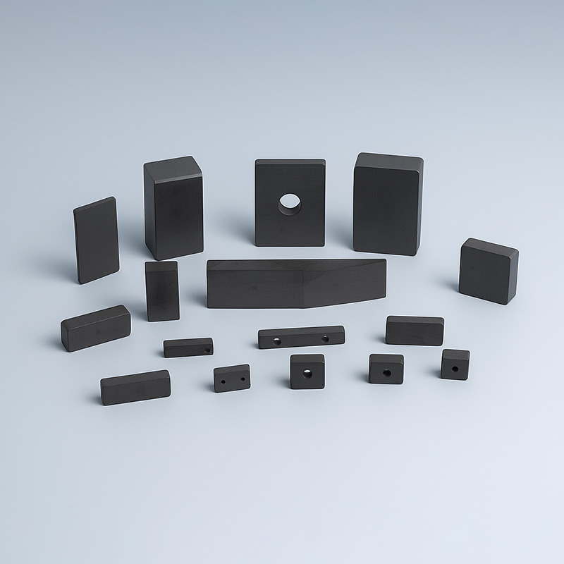 Ferrite block magnets deliver steady magnetic force and are unaffected by moisture or most chemicals. Their shape allows for even magnetic distribution across a flat surface, and they perform well in environments where neodymium magnets may corrode or become unstable.